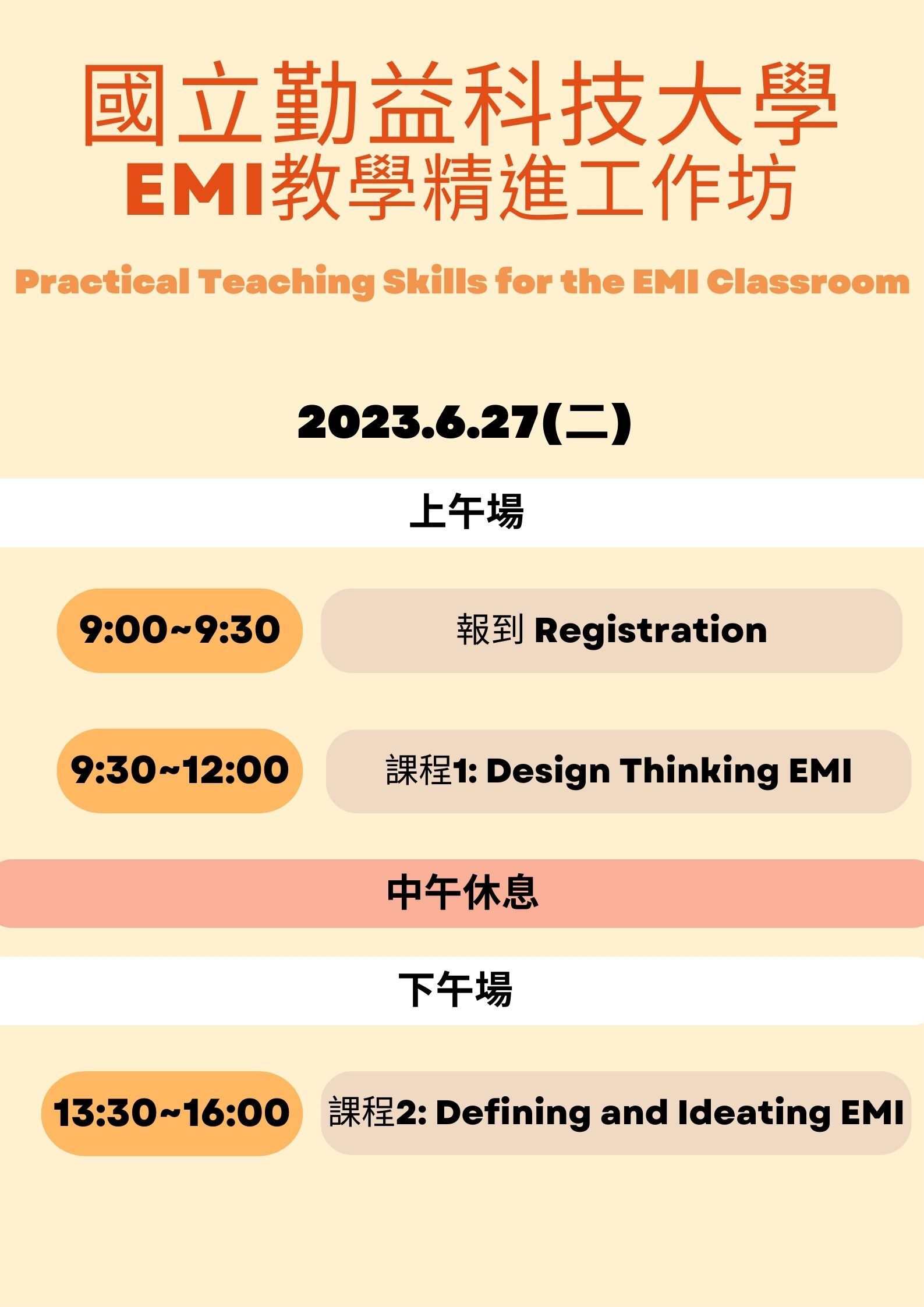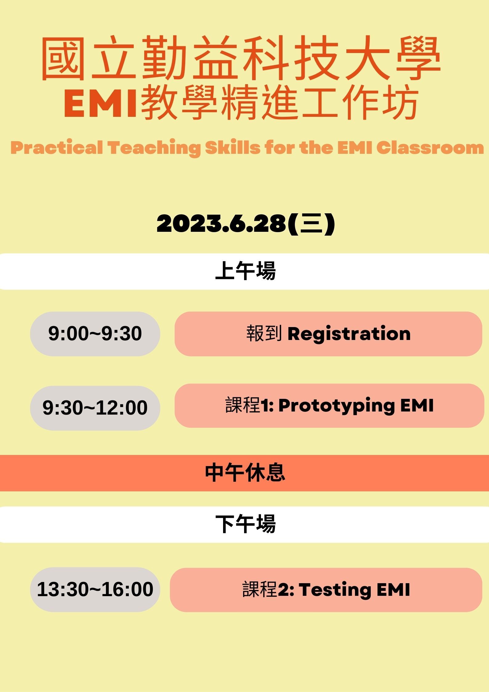 轉知◎國立勤益科技大學辦理「「EMI教學精進工作坊」